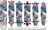 Our longboard skins are made so that one size fits boards up to 10” wide x 42” long. This means after applying the skin it you will trimming to fit you’re the shape of your board with a sharp utility knife.