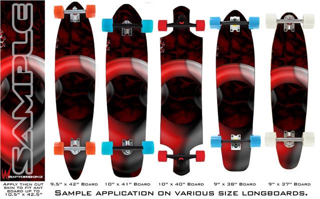 Our longboard skins are made so that one size fits boards up to 10” wide x 42” long. This means after applying the skin it you will trimming to fit you’re the shape of your board with a sharp utility knife.