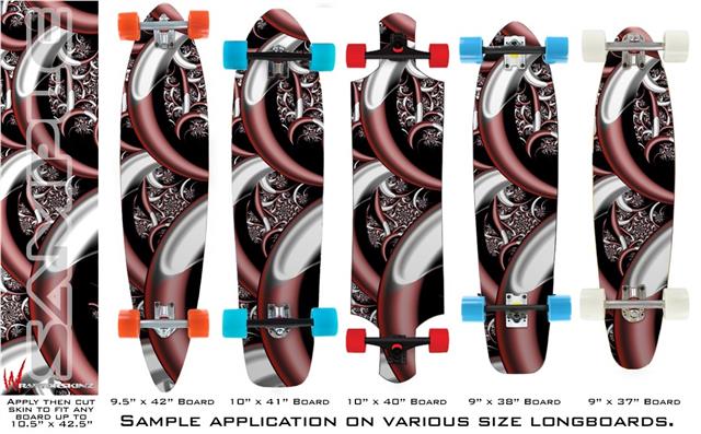 Our longboard skins are made so that one size fits boards up to 10” wide x 42” long. This means after applying the skin it you will trimming to fit you’re the shape of your board with a sharp utility knife.
