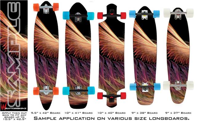 Our longboard skins are made so that one size fits boards up to 10” wide x 42” long. This means after applying the skin it you will trimming to fit you’re the shape of your board with a sharp utility knife.