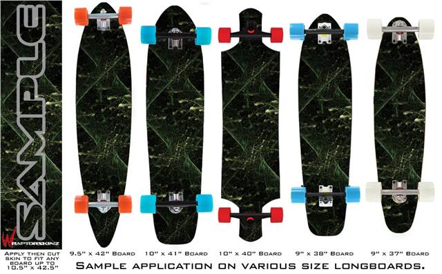 Our longboard skins are made so that one size fits boards up to 10” wide x 42” long. This means after applying the skin it you will trimming to fit you’re the shape of your board with a sharp utility knife.