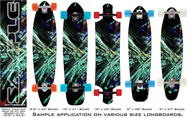 Our longboard skins are made so that one size fits boards up to 10” wide x 42” long. This means after applying the skin it you will trimming to fit you’re the shape of your board with a sharp utility knife.