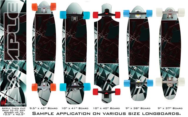 Our longboard skins are made so that one size fits boards up to 10” wide x 42” long. This means after applying the skin it you will trimming to fit you’re the shape of your board with a sharp utility knife.