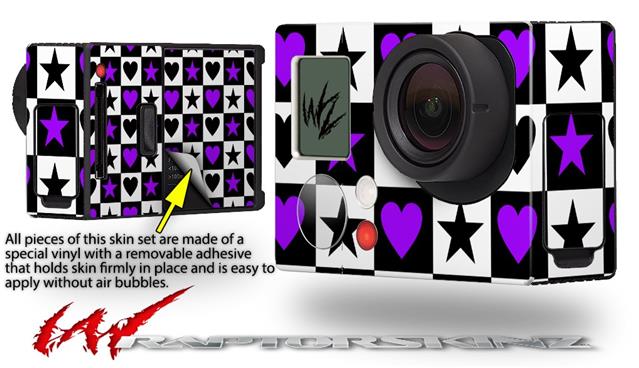 Purple Hearts And Stars - Decal Style Skin fits GoPro Hero 3+ Camera (GOPRO NOT INCLUDED)