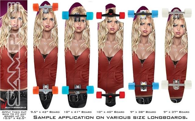 Our longboard skins are made so that one size fits boards up to 10” wide x 42” long. This means after applying the skin it you will trimming to fit you’re the shape of your board with a sharp utility knife.