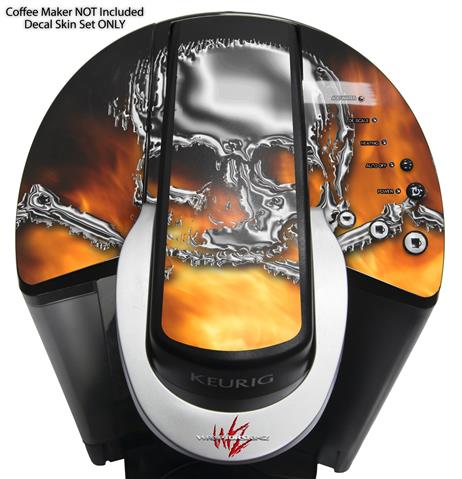 Decal Style Vinyl Skin compatible with Keurig K40 Elite Coffee Makers Chrome Skull on Fire (KEURIG NOT INCLUDED)