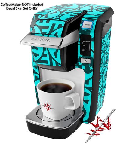 Decal Style Vinyl Skin compatible with Keurig K10 / K15 Mini Plus Coffee Makers Skull Patch Pattern Blue (KEURIG NOT INCLUDED)