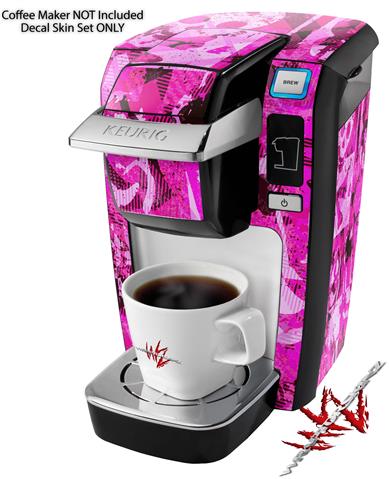 Decal Style Vinyl Skin compatible with Keurig K10 / K15 Mini Plus Coffee Makers Pink Plaid Graffiti (KEURIG NOT INCLUDED)