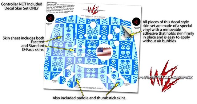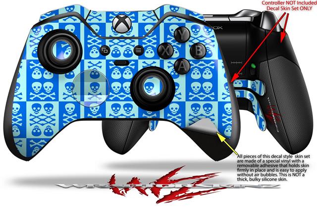 Skull And Crossbones Pattern Blue - Decal Style Skin fits Microsoft XBOX One ELITE Wireless Controller