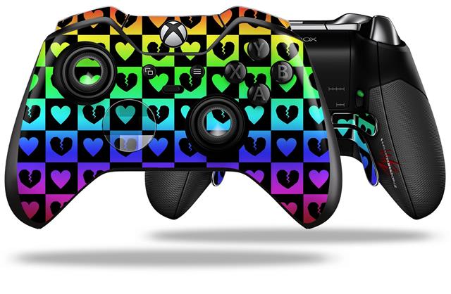 Love Heart Checkers Rainbow - Decal Style Skin fits Microsoft XBOX One ELITE Wireless Controller