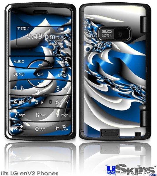 Skin covers front and back of LG enV2 cell phone.