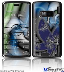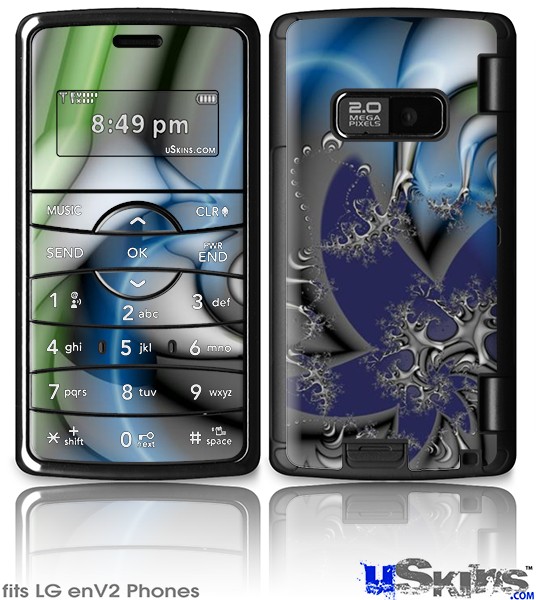 Skin covers front and back of LG enV2 cell phone.