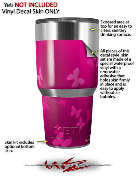 Skin Decal Wrap for Yeti Tumbler Rambler 30 oz Bokeh Butterflies Hot Pink (TUMBLER NOT INCLUDED)
