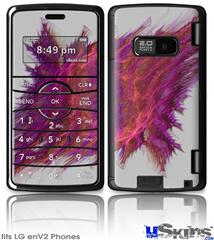 Skin covers front and back of LG enV2 cell phone.