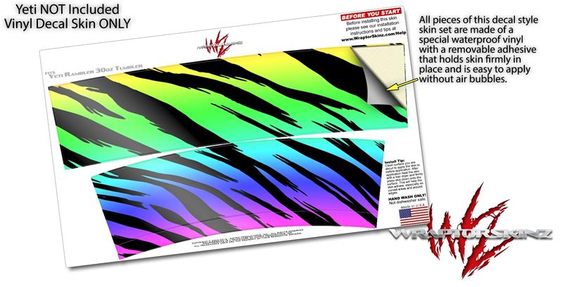 Skin Decal Wrap for Yeti Tumbler Rambler 30 oz Tiger Rainbow (TUMBLER NOT INCLUDED)