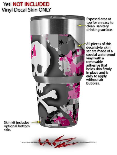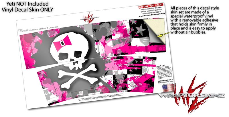 Skin Decal Wrap for Yeti Tumbler Rambler 30 oz Girly Pink Bow Skull (TUMBLER NOT INCLUDED)