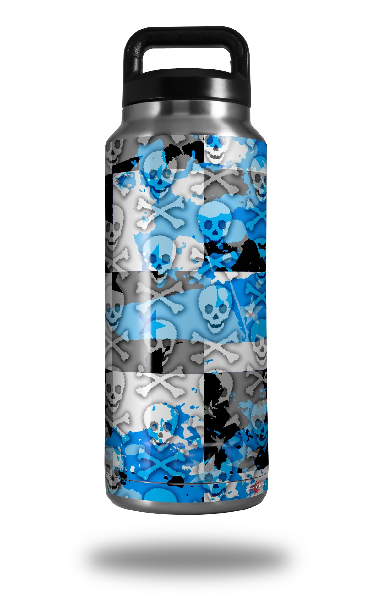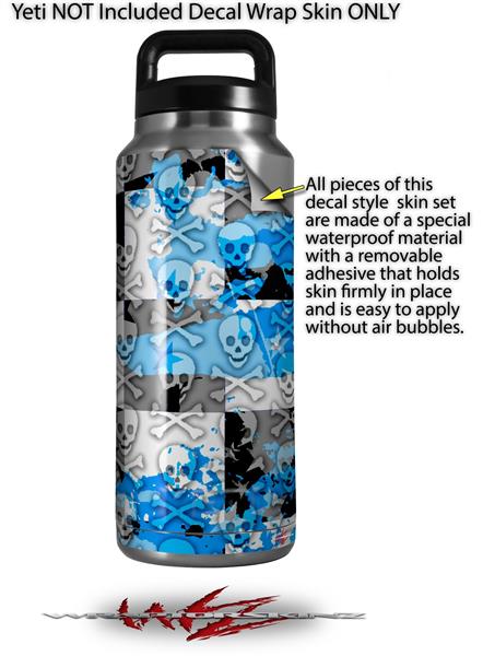 WraptorSkinz Skin Decal Wrap for Yeti Rambler Bottle 36oz Checker Skull Splatter Blue (YETI NOT INCLUDED)