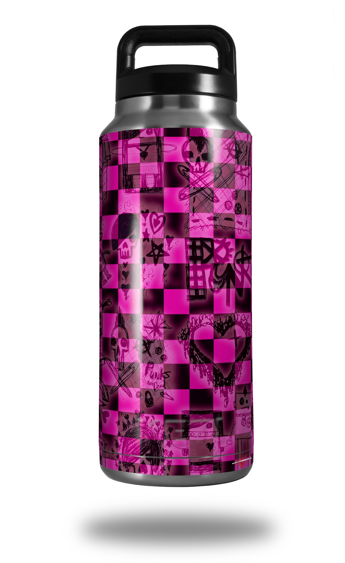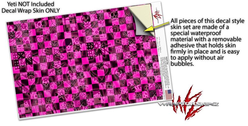 WraptorSkinz Skin Decal Wrap for Yeti Rambler Bottle 36oz Pink Checkerboard Sketches (YETI NOT INCLUDED)