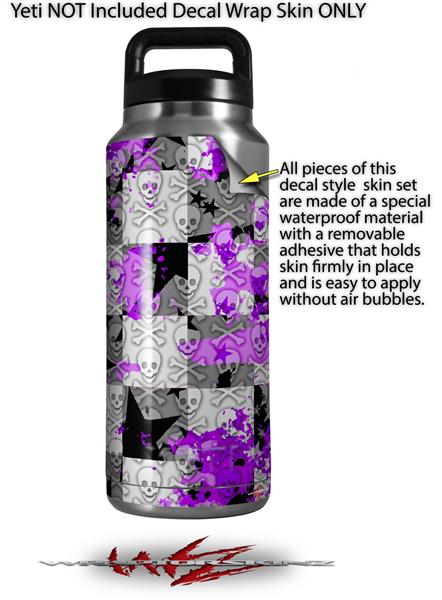 WraptorSkinz Skin Decal Wrap for Yeti Rambler Bottle 36oz Purple Checker Skull Splatter (YETI NOT INCLUDED)