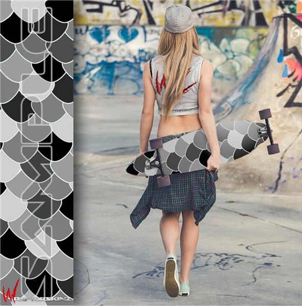 Scales Black - Decal Style Vinyl Wrap Skin fits Longboard Skateboards up to 10"x42" (LONGBOARD NOT INCLUDED)