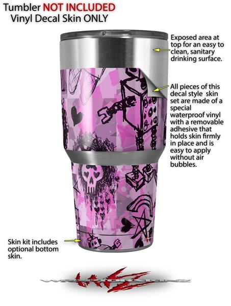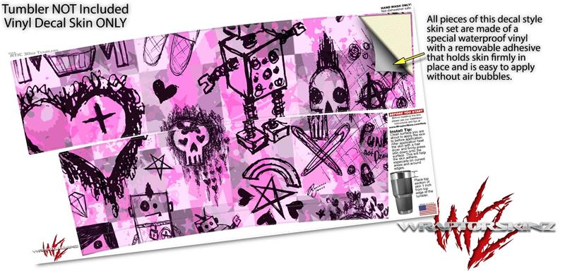 WraptorSkinz Skin Wrap compatible with RTIC 30oz ORIGINAL 2017 AND OLDER Tumblers Scene Kid Sketches Pink (TUMBLER NOT INCLUDED)
