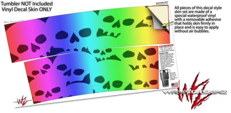 WraptorSkinz Skin Wrap compatible with RTIC 30oz ORIGINAL 2017 AND OLDER Tumblers Rainbow Skull Collection (TUMBLER NOT INCLUDED)