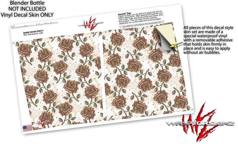 Decal Style Skin Wrap works with Blender Bottle 22oz ProStak Flowers Pattern Roses 20 (BOTTLE NOT INCLUDED)