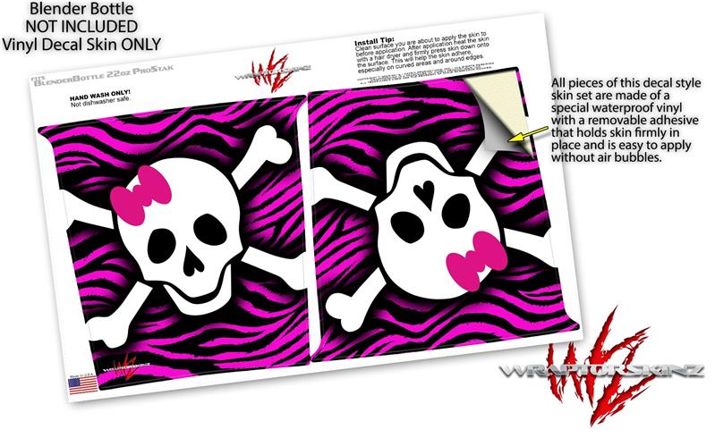 Decal Style Skin Wrap works with Blender Bottle 22oz ProStak Pink Zebra Skull (BOTTLE NOT INCLUDED)