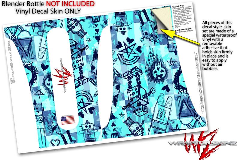 Decal Style Skin Wrap works with Blender Bottle 28oz Scene Kid Sketches Blue (BOTTLE NOT INCLUDED)
