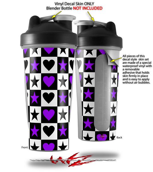 Decal Style Skin Wrap works with Blender Bottle 28oz Purple Hearts And Stars (BOTTLE NOT INCLUDED)