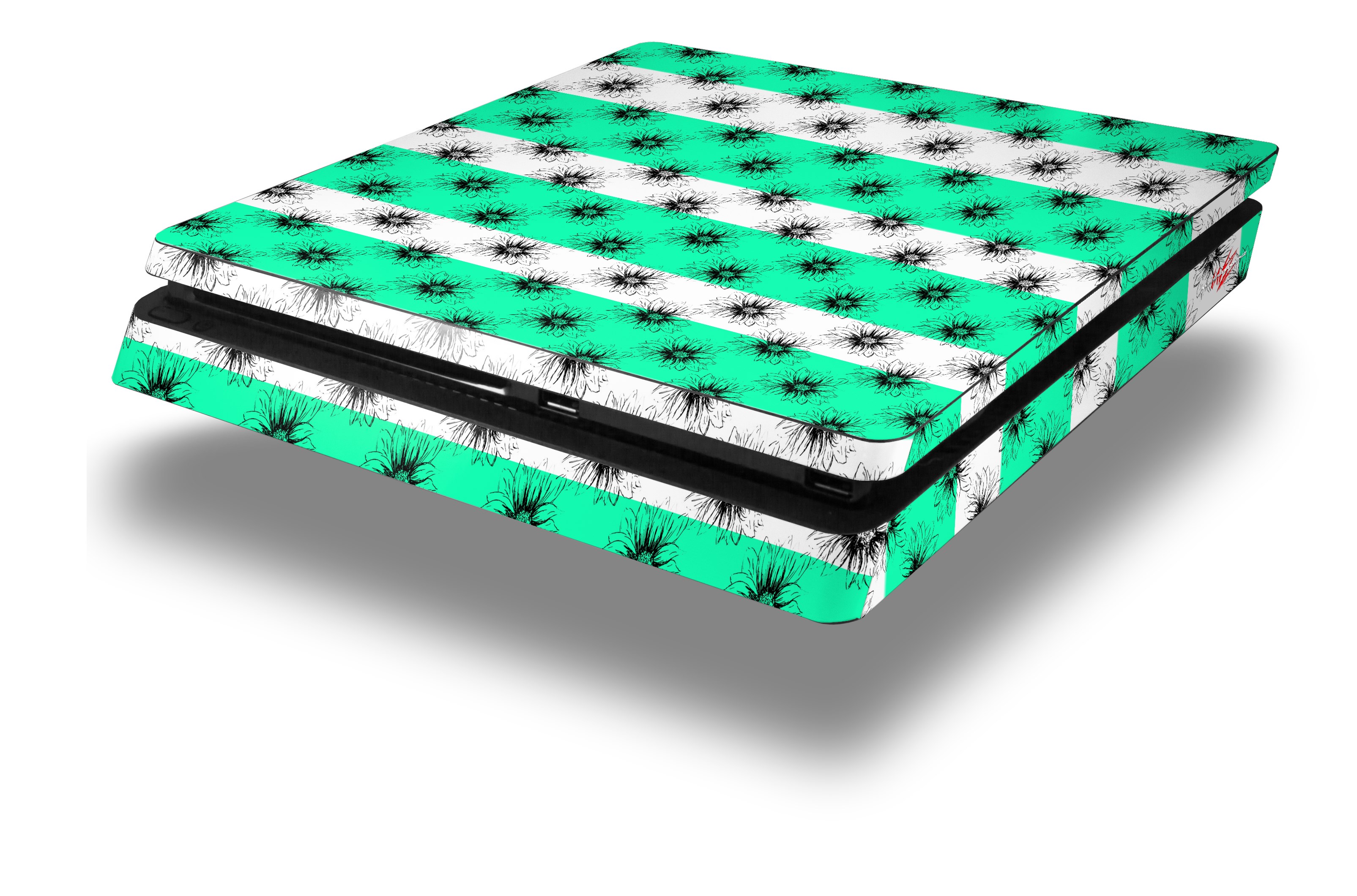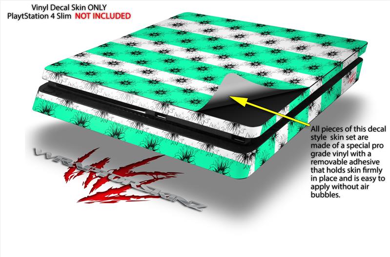 Vinyl Decal Skin Wrap compatible with Sony PlayStation 4 Slim Console Kearas Daisies Stripe SeaFoam (PS4 NOT INCLUDED)