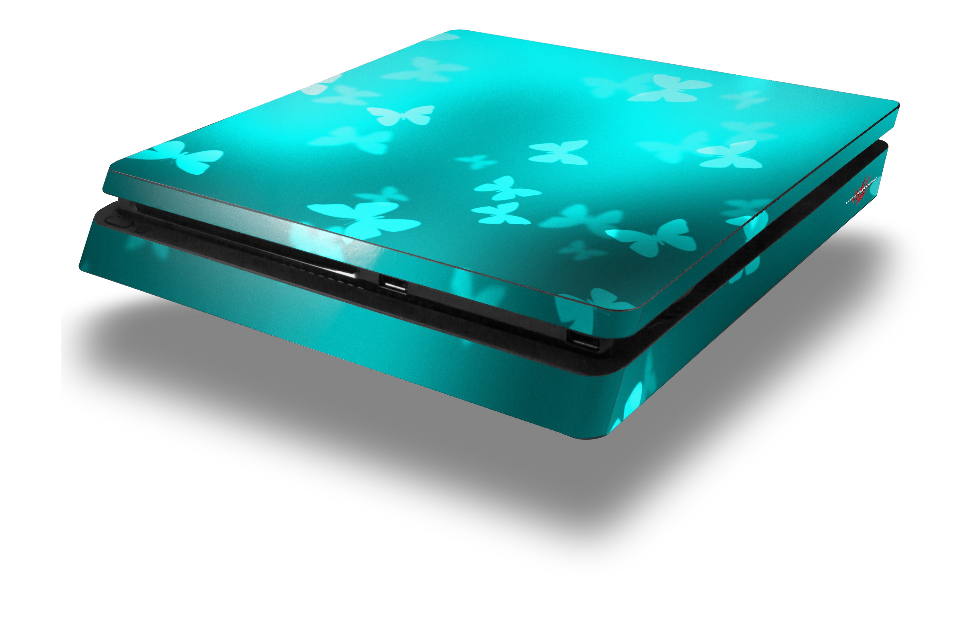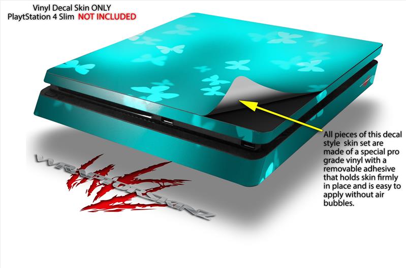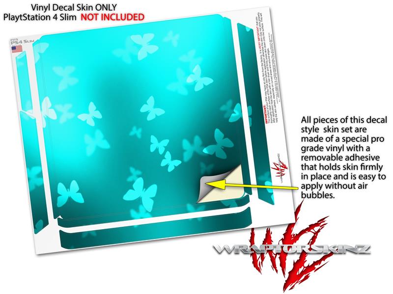 Vinyl Decal Skin Wrap compatible with Sony PlayStation 4 Slim Console Bokeh Butterflies Neon Teal (PS4 NOT INCLUDED)