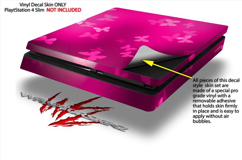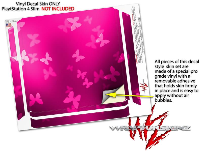 Vinyl Decal Skin Wrap compatible with Sony PlayStation 4 Slim Console Bokeh Butterflies Hot Pink (PS4 NOT INCLUDED)