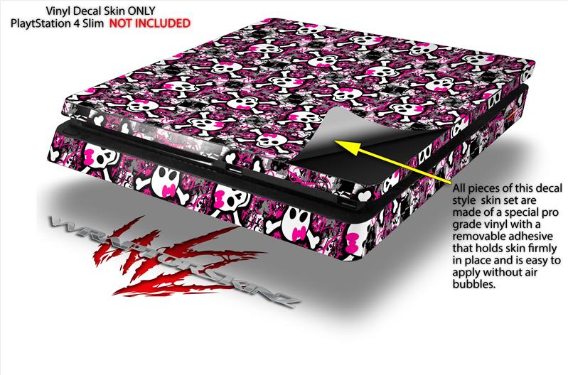 Vinyl Decal Skin Wrap compatible with Sony PlayStation 4 Slim Console Splatter Girly Skull Pink (PS4 NOT INCLUDED)