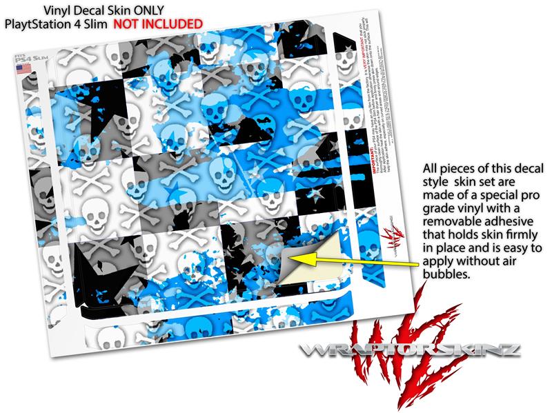 Vinyl Decal Skin Wrap compatible with Sony PlayStation 4 Slim Console Checker Skull Splatter Blue (PS4 NOT INCLUDED)