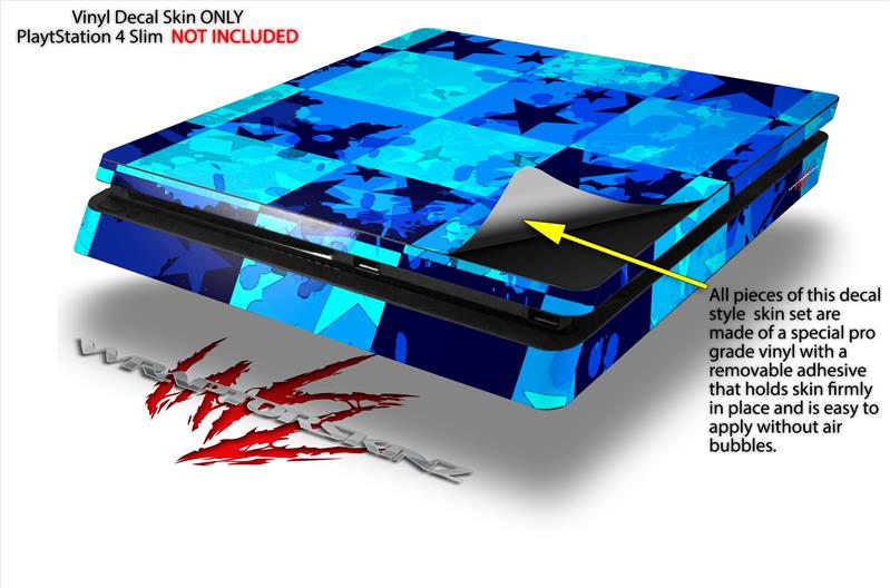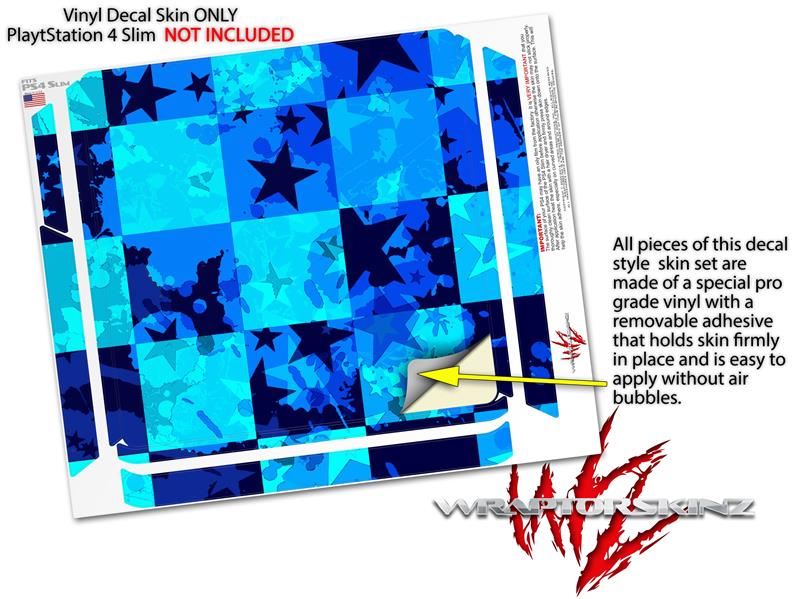 Vinyl Decal Skin Wrap compatible with Sony PlayStation 4 Slim Console Blue Star Checkers (PS4 NOT INCLUDED)