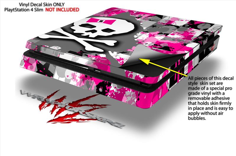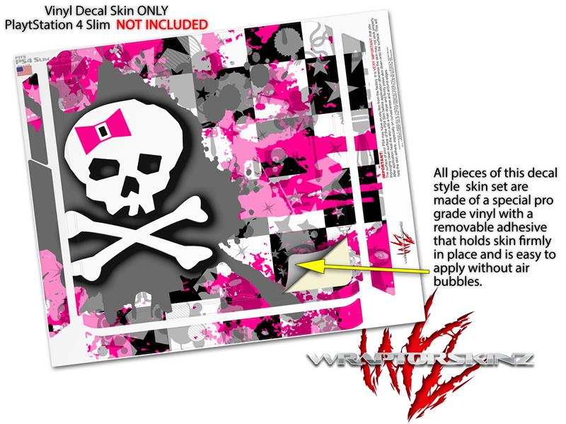 Vinyl Decal Skin Wrap compatible with Sony PlayStation 4 Slim Console Girly Pink Bow Skull (PS4 NOT INCLUDED)