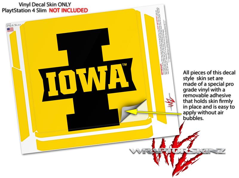Vinyl Decal Skin Wrap compatible with Sony PlayStation 4 Slim Console Iowa Hawkeyes 04 Black on Gold (PS4 NOT INCLUDED)