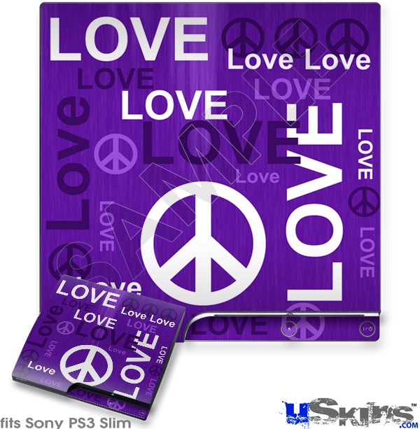 Decal Skin compatible with Sony PS3 Slim Love and Peace Purple