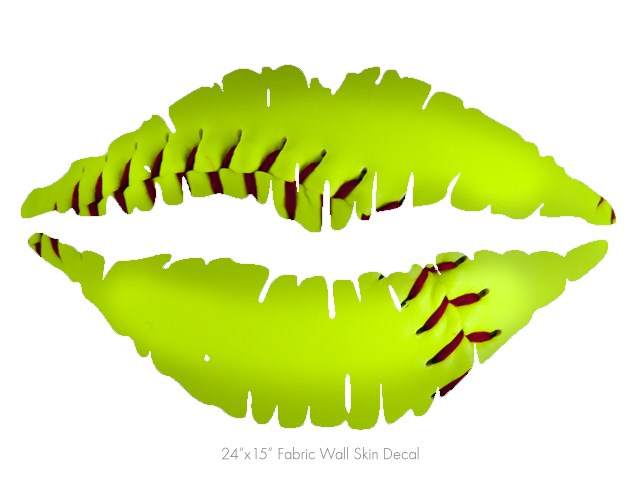 Softball - Kissing Lips Fabric Wall Skin Decal measures 24x15 inches