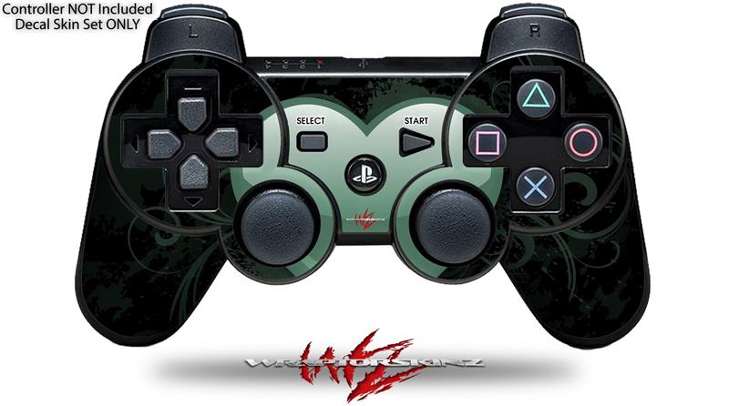 Sony PS3 Controller Decal Style Skin - Glass Heart Grunge Seafoam Green (CONTROLLER NOT INCLUDED)
