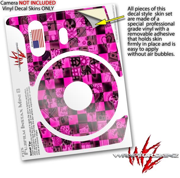 WraptorSkinz Skin Decal Wrap compatible with Fujifilm Mini 8 Camera Pink Checkerboard Sketches (CAMERA NOT INCLUDED)