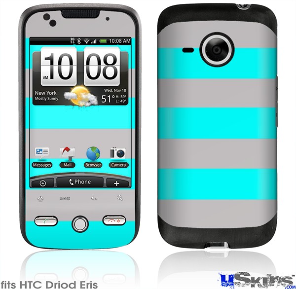 HTC Droid Eris Skin - Psycho Stripes Neon Teal and Gray