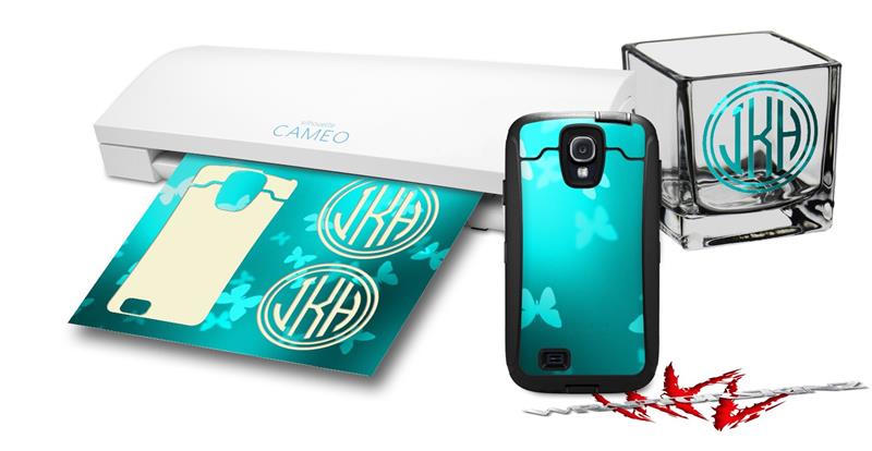 WraptorSkinz Vinyl Craft Cutter Designer 12x12 Sheets Bokeh Butterflies Neon Teal - 2 Pack