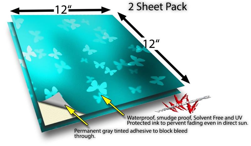 WraptoSkinz™ skin vinyl craft sheets are printed using superb photo quality designs and vibrant colors printed with special UV Protected fade resistant inks that last even in direct sun for years. Unlike other brands our inks are NOT solvent based. WraptorSkinz are a manufactured from professional grade 3mill vinyl. These sheets are waterproof, the designs will not run or smear even if submerged in water.