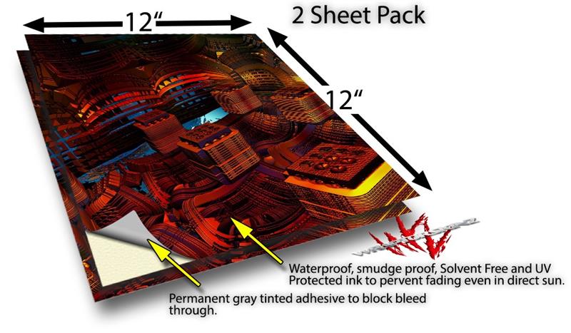 WraptoSkinz™ skin vinyl craft sheets are printed using superb photo quality designs and vibrant colors printed with special UV Protected fade resistant inks that last even in direct sun for years. Unlike other brands our inks are NOT solvent based. WraptorSkinz are a manufactured from professional grade 3mill vinyl. These sheets are waterproof, the designs will not run or smear even if submerged in water.