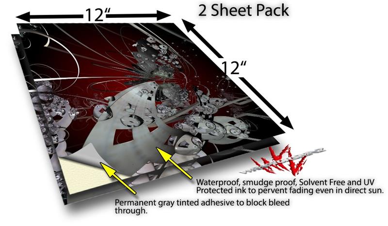 WraptoSkinz™ skin vinyl craft sheets are printed using superb photo quality designs and vibrant colors printed with special UV Protected fade resistant inks that last even in direct sun for years. Unlike other brands our inks are NOT solvent based. WraptorSkinz are a manufactured from professional grade 3mill vinyl. These sheets are waterproof, the designs will not run or smear even if submerged in water.