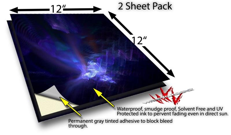 WraptoSkinz™ skin vinyl craft sheets are printed using superb photo quality designs and vibrant colors printed with special UV Protected fade resistant inks that last even in direct sun for years. Unlike other brands our inks are NOT solvent based. WraptorSkinz are a manufactured from professional grade 3mill vinyl. These sheets are waterproof, the designs will not run or smear even if submerged in water.
