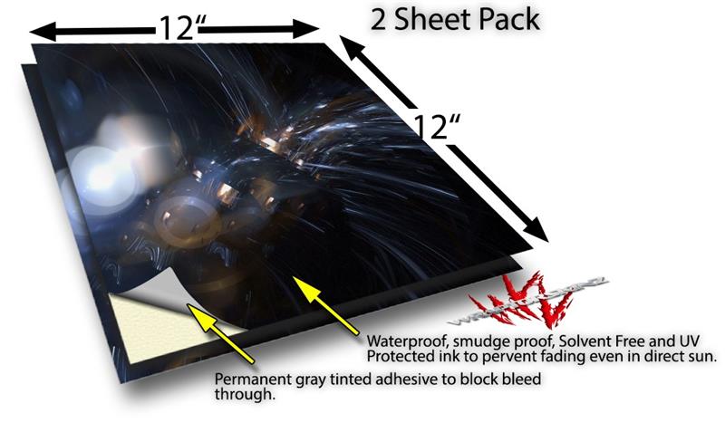 WraptoSkinz™ skin vinyl craft sheets are printed using superb photo quality designs and vibrant colors printed with special UV Protected fade resistant inks that last even in direct sun for years. Unlike other brands our inks are NOT solvent based. WraptorSkinz are a manufactured from professional grade 3mill vinyl. These sheets are waterproof, the designs will not run or smear even if submerged in water.