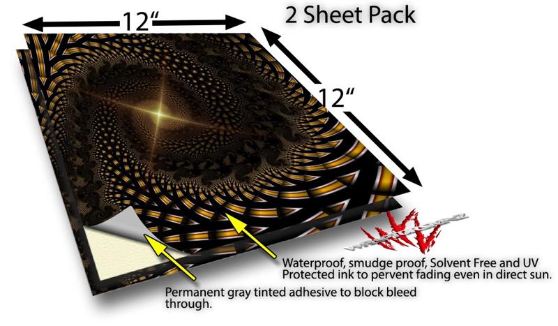 WraptoSkinz™ skin vinyl craft sheets are printed using superb photo quality designs and vibrant colors printed with special UV Protected fade resistant inks that last even in direct sun for years. Unlike other brands our inks are NOT solvent based. WraptorSkinz are a manufactured from professional grade 3mill vinyl. These sheets are waterproof, the designs will not run or smear even if submerged in water.
